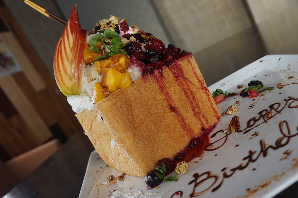 一斤の食パンを丸ごと使ったインパクトのあるハニートースト、ベリーソース! 2,500円